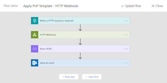 This way, we can perform actions in the Flow after the PnP template has been successfully applied to the site.